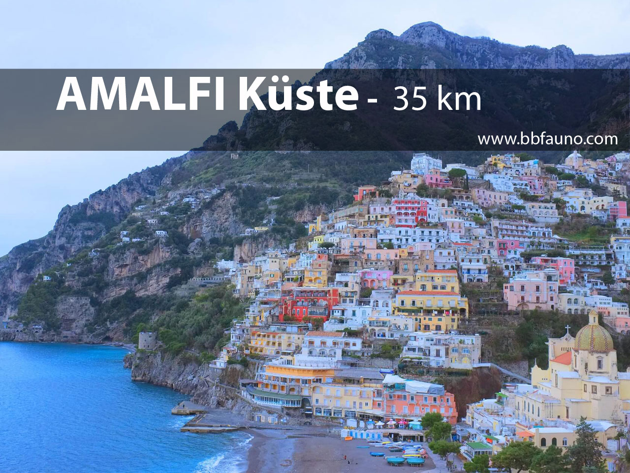 Eine andere Möglichkeit könnte ein täglicher Ausflug entlang der herrlichen Küste von Amalfi und Sorrent sein. Mit seinen 50 km, auf denen sich die 13 Gemeinden abwechseln, bietet die Küste eine Vielzahl von Wundern und Landschaften, die es zu entdecken gilt.
