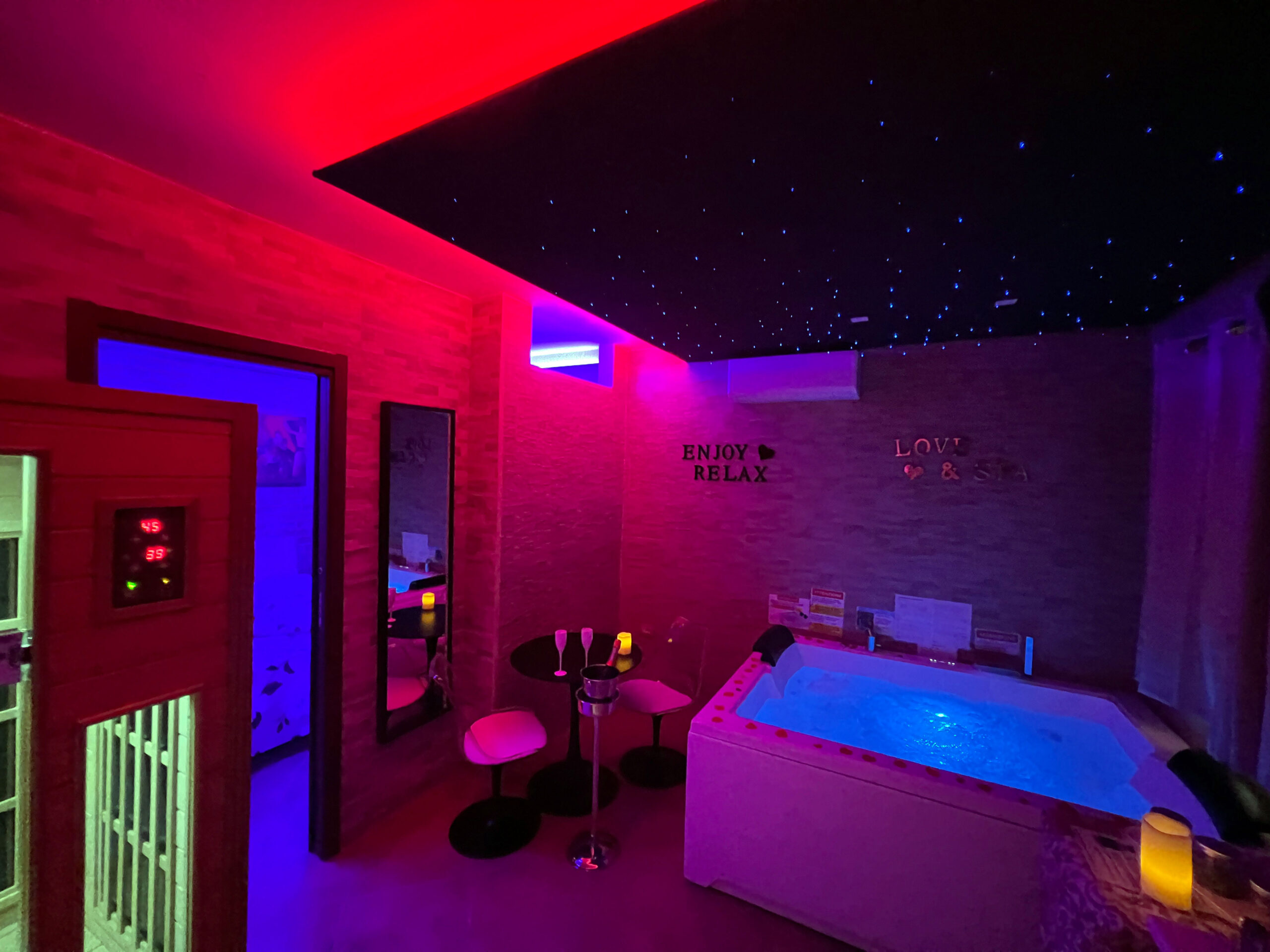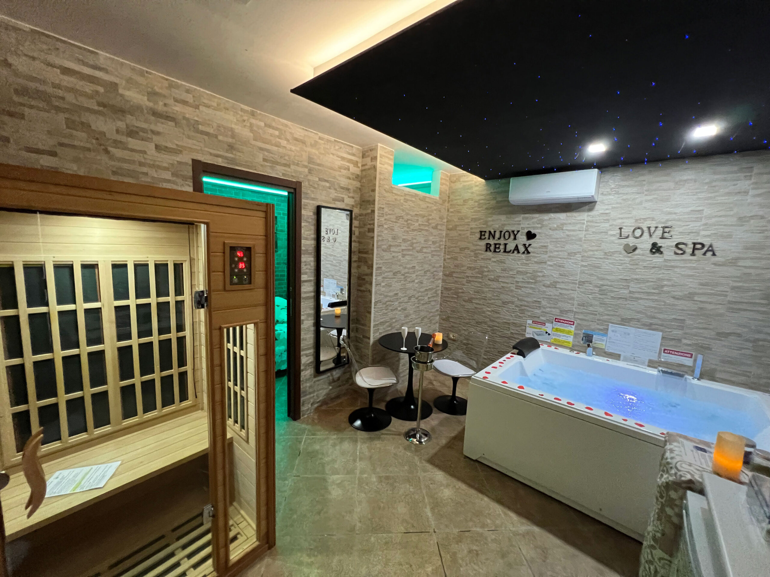 En esta suite hay un gran bañera hidromasaje y una sauna de infrarrojos, cielo estrellado. Un verdadero SPA privado.
