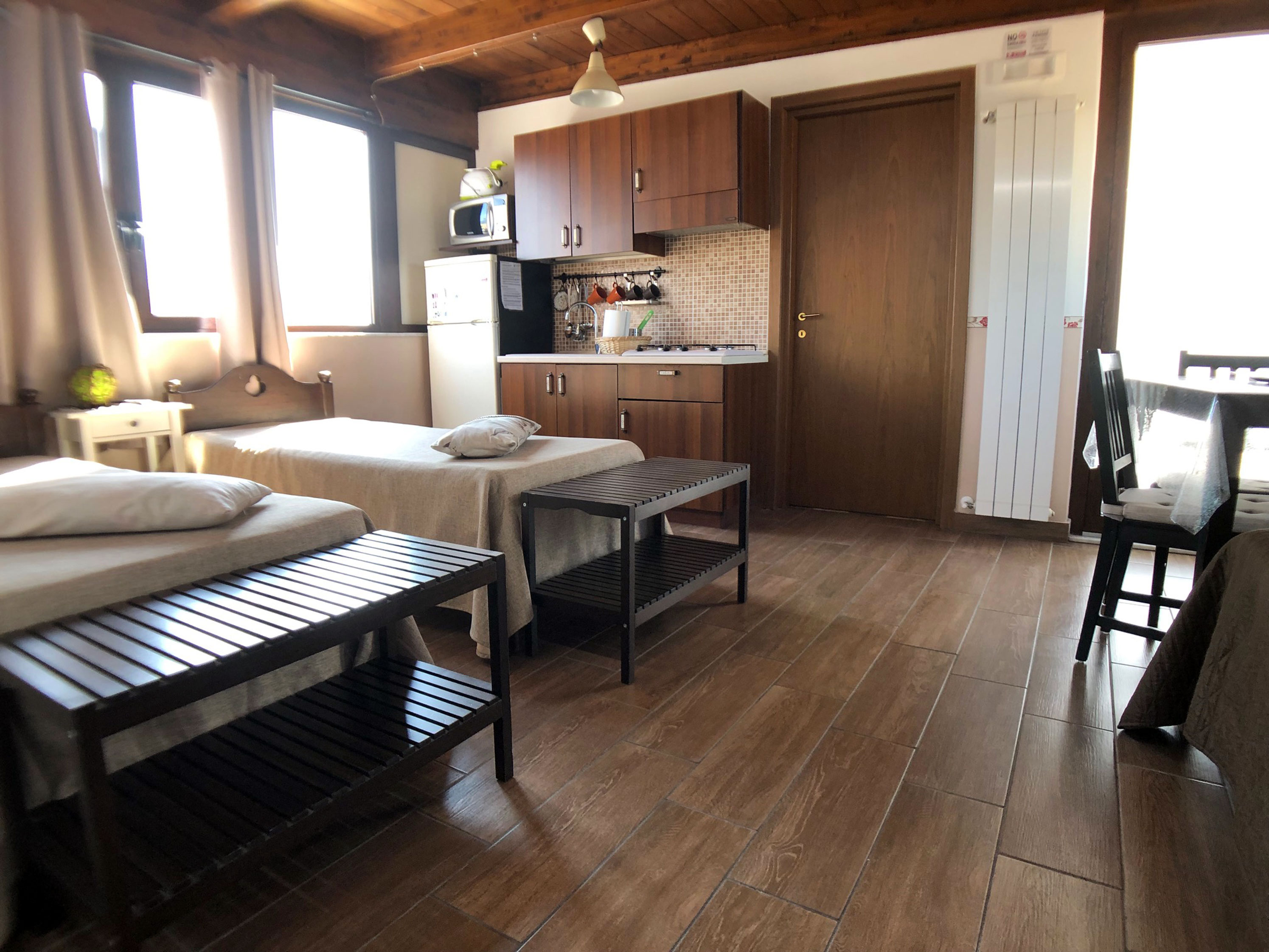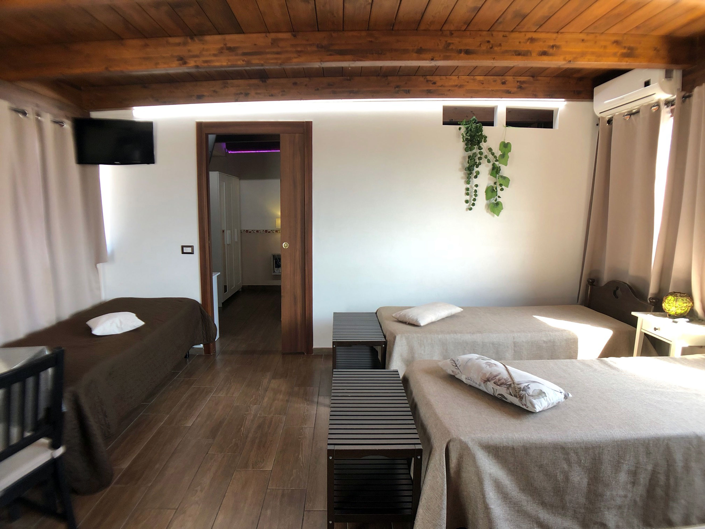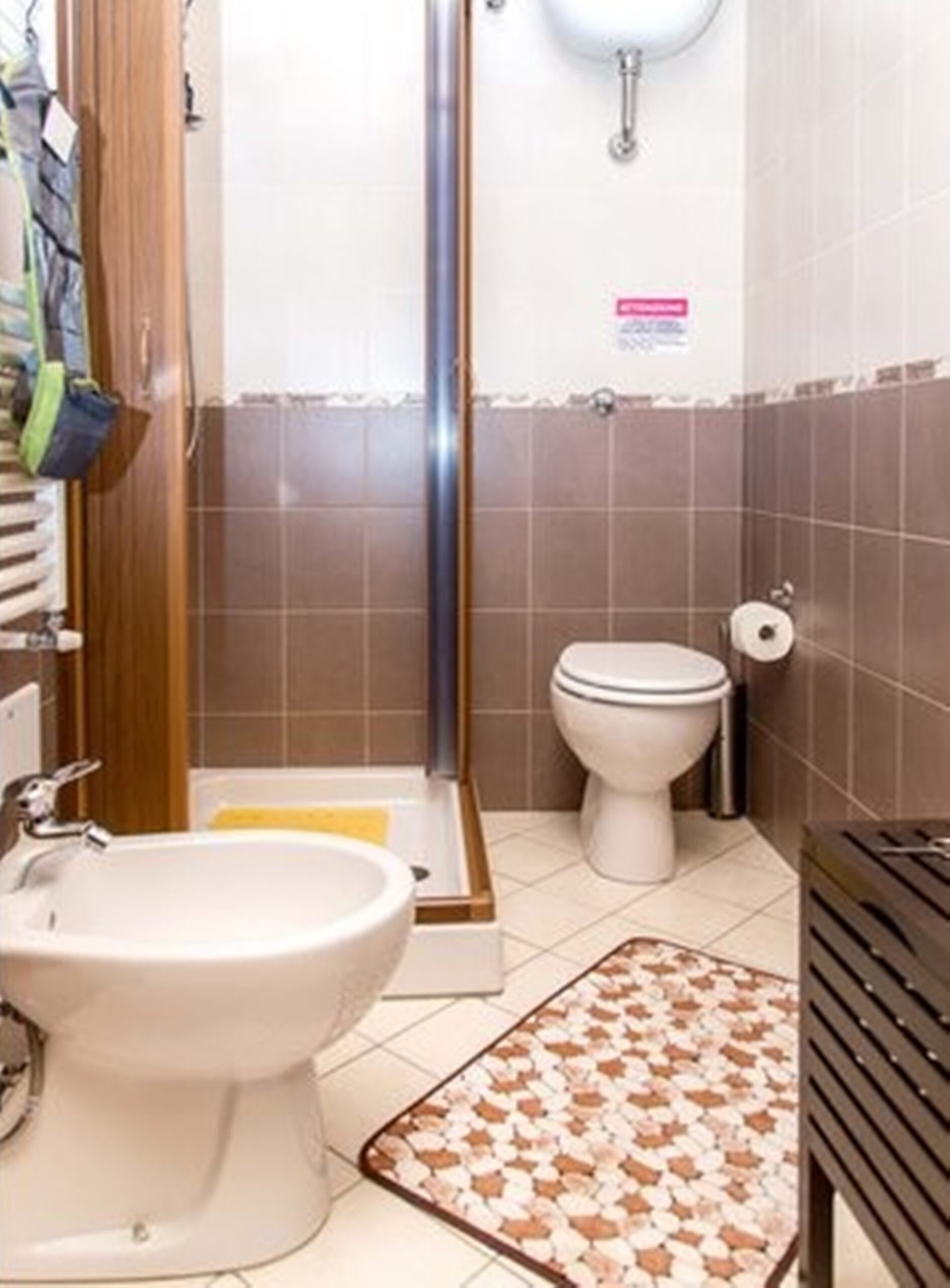 Cet appartement panoramique de 50 m² avec terrasse dispose de 2 chambres séparées: une chambre avec un grand lit double + un lit superposé pour 4 personnes; une chambre avec 3 lits simples pour accueillir 3 personnes (les lits sont très confortables avec des matelas et des oreillers en mousse à mémoire de haute qualité), avec salle de bain privée À usage exclusif (douche, sèche-cheveux, articles de toilette gratuits, toilettes, bidet, lave-linge).