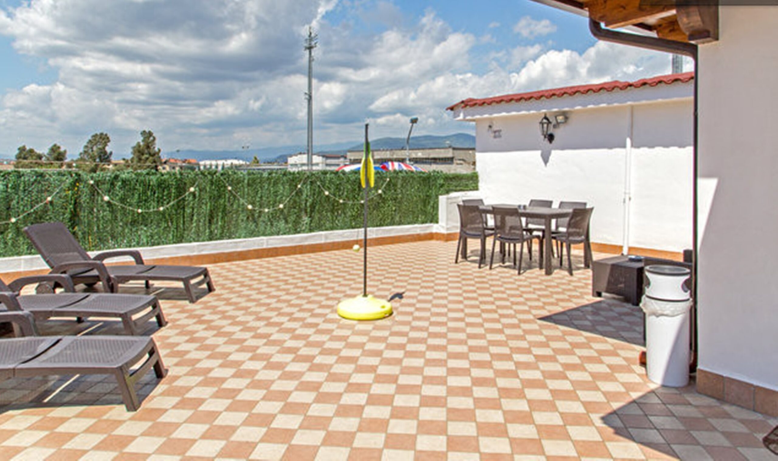 L’appartement est située sur la terrasse (2ème étage) et dispose d’une terrasse de 80 m2 avec vue sur le mont. Vésuve, équipé de chaises, de tables et de chaise longue.