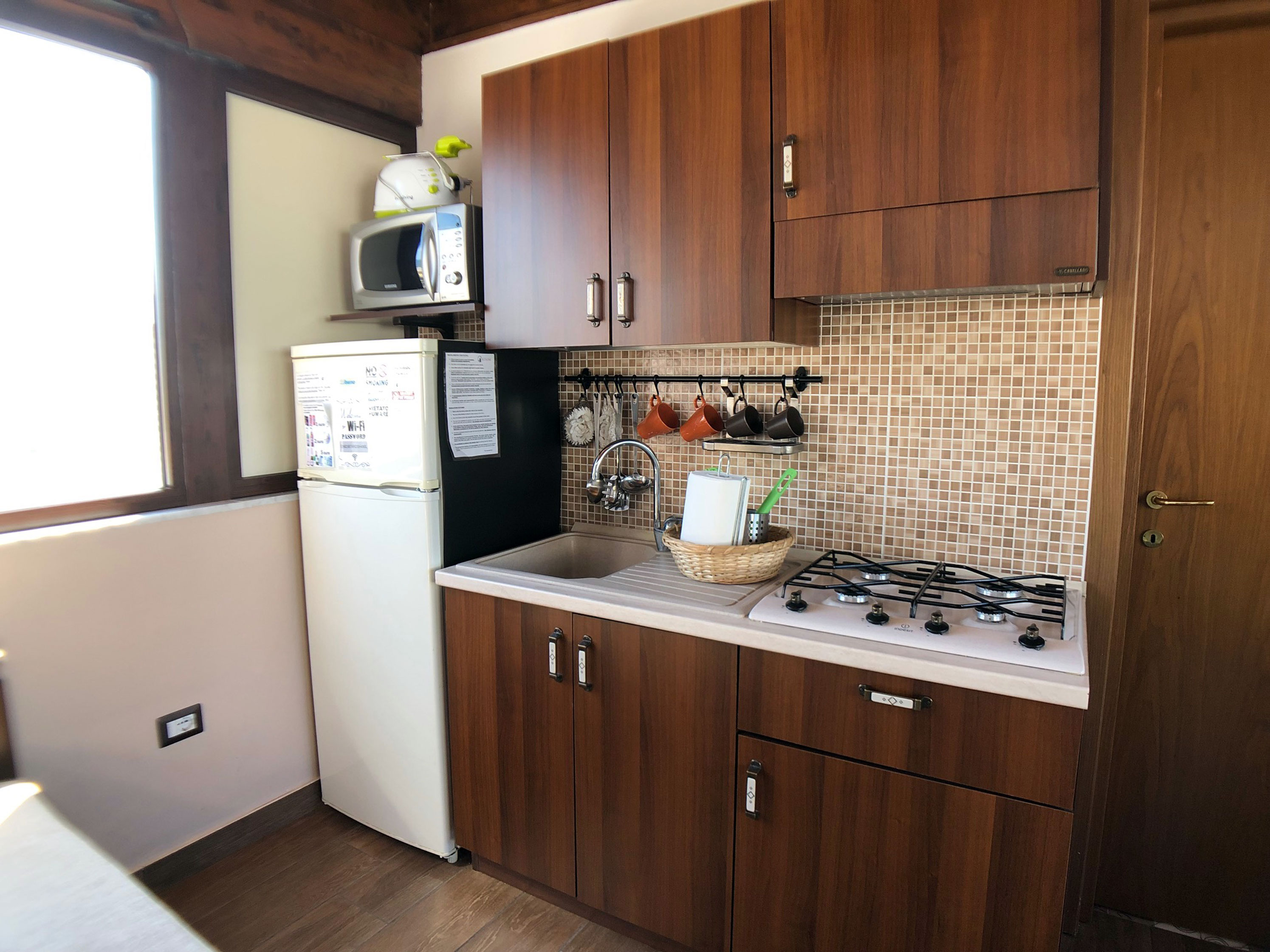 Cette studio appartement dispose d’une kitchenette à usage exclusif (évier, cuisinière 4 feux, ustensiles et vaisselle, micro-ondes).