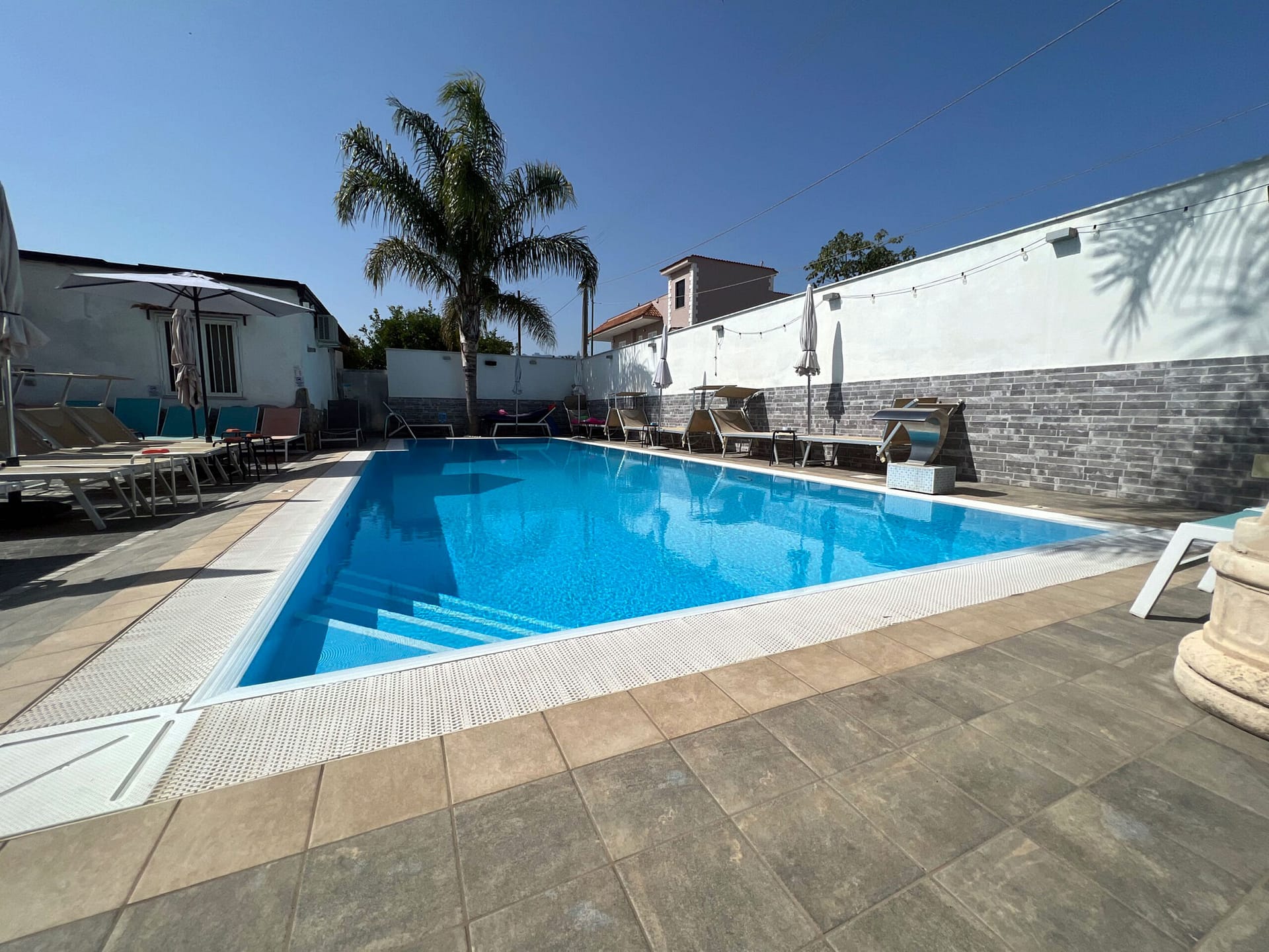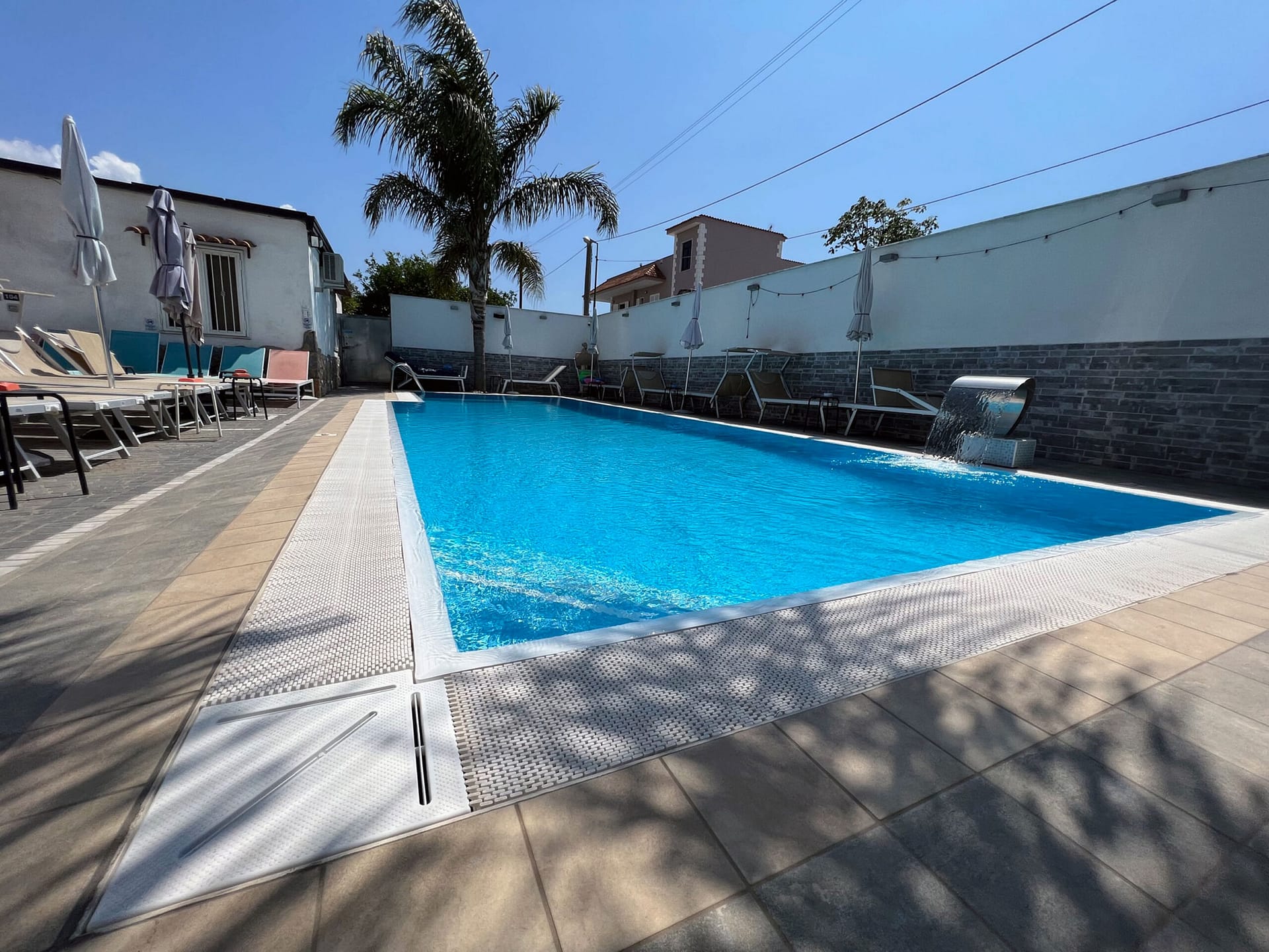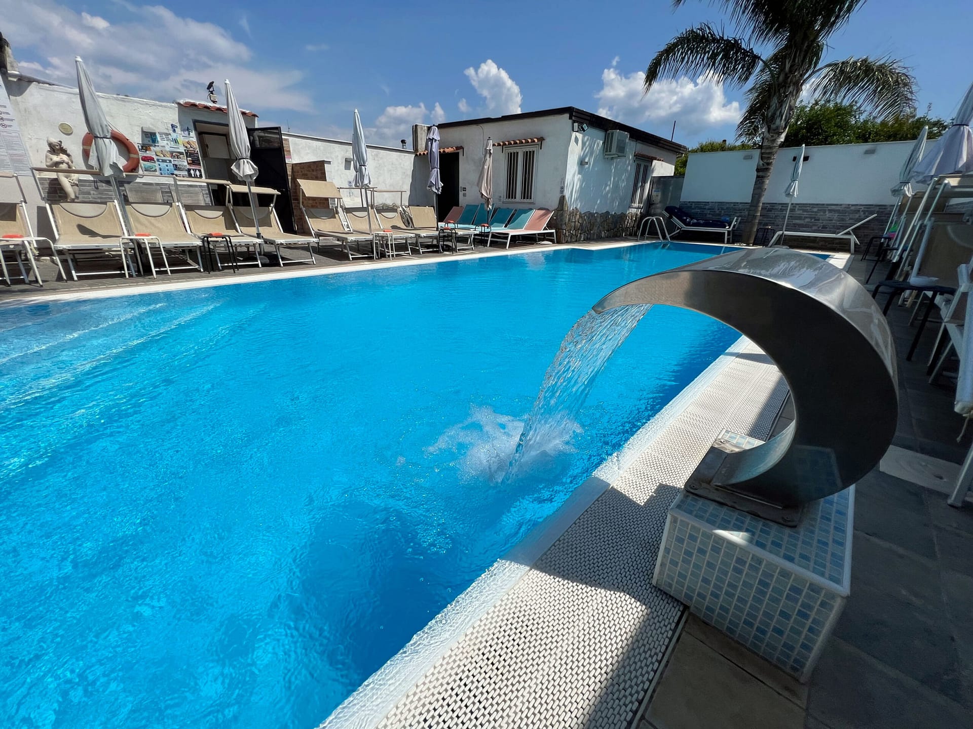 La tua oasi di Relax in Piscina esterna a sfioro ! Prenota il tuo ingresso in piscina , incluso il lettino, ombrelloni, docce calde, WiFi. In loco area BAR , piccola ristorazione, solarium, cascata cervicale, idromassaggio verticale.